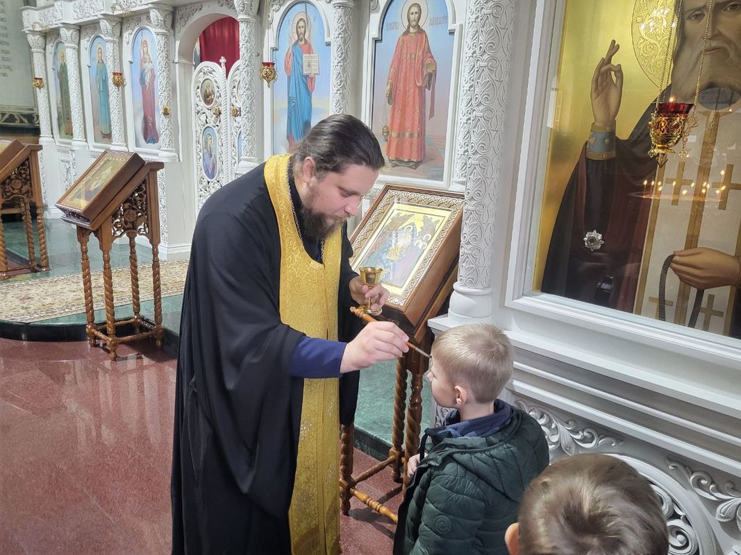Батюшка, с теплотой и любовью, рассказал об истории создания храма, о его святом покровителе – преподобном Серафиме Саровском, чья жизнь была примером смирения, молитвы и служения Богу.